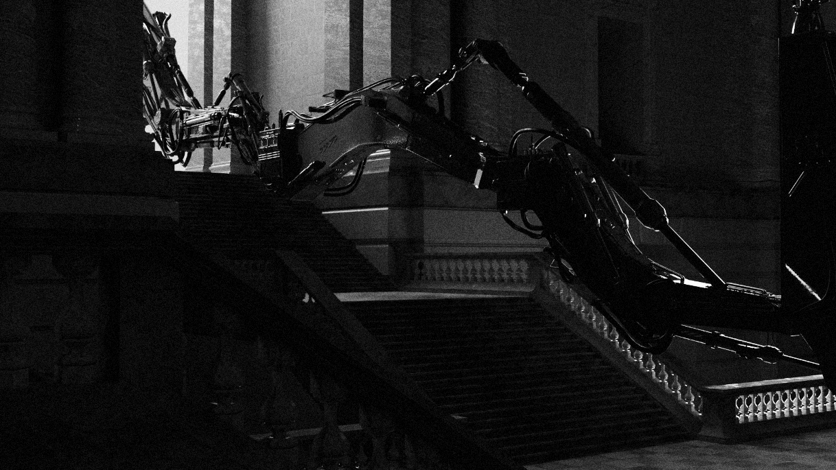 Developed in collaboration with Maky Margaridis Founder of 1080p Studio, this project explores the intersection of industrial brutality and monumental elegance. The vision was to take a raw, functional reference a mechanical excavator arm and evolve it into a complex robotic entity. By placing this intricate machine within the vast, silent halls of a museum like architectural space, the project creates a powerful dialogue between advanced technology and timeless structural grandeur.